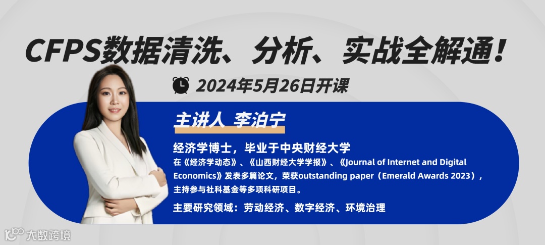 本课程主讲CFPS这一大型微观数据库详细的介绍与清洗过程,将清洗后的数据辅以实证实战案例,力求让学员了解、学会、精通CFPS这一大型微观数据库使用操作。微观数据发文顶刊!