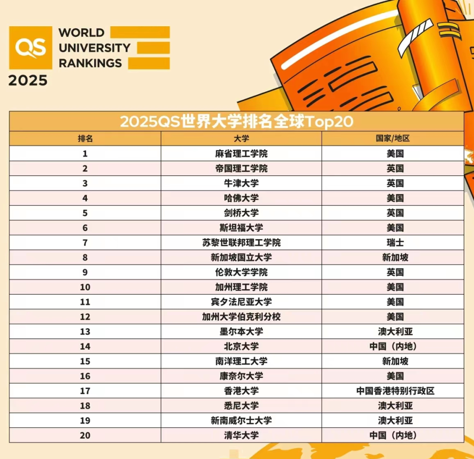 国际高等教育研究机构QS Quacquarelli Symonds于今日正式发布了QS2025世界大学排名。