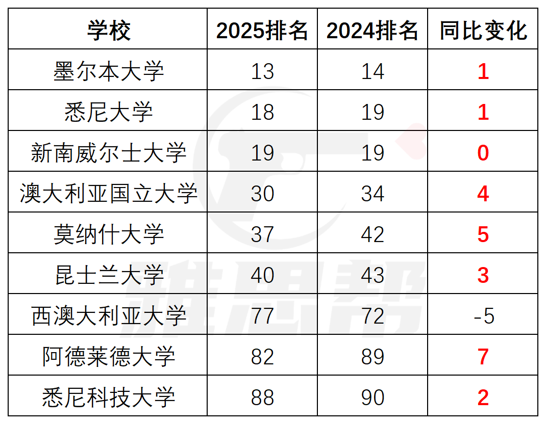 澳洲大学可以说是这两年的版本答案,学校排名普遍上升,共有9所大学位列Top100。