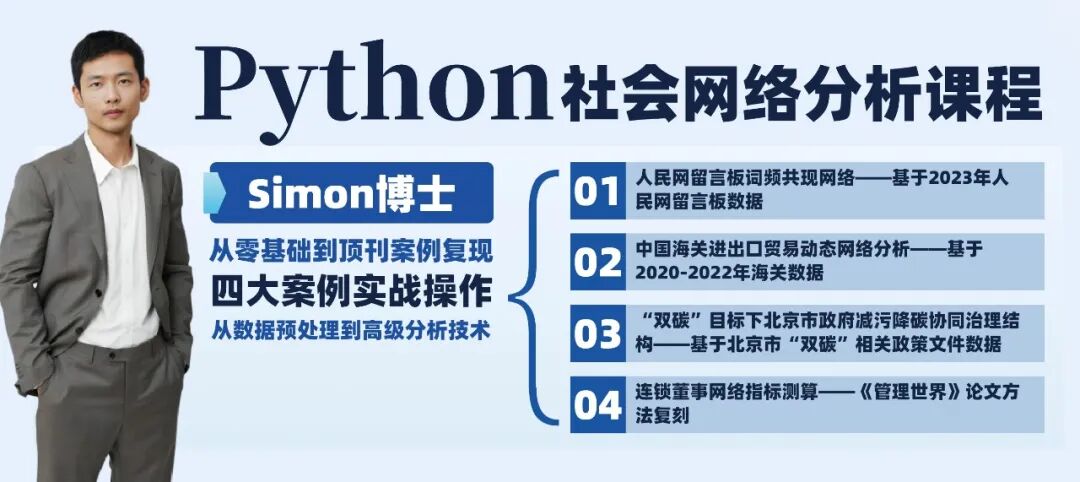 《Python社会网络分析:从零基础到顶刊案例复现》是一门专为社会科学和经济管理领域的科研人员设计的课程,旨在提供一个深度学习的平台。
