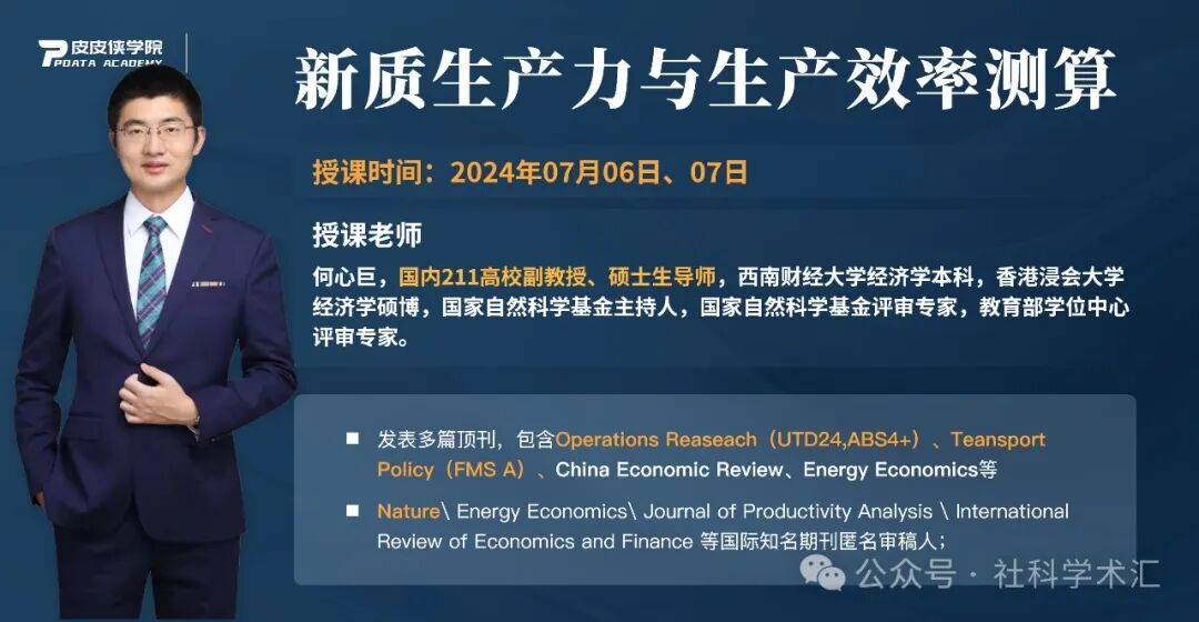 本课程旨在深入剖析新质生产力与生产效率的关系,介绍生产理论、经典生产效率 模型以及新兴的效率模型,并通过 MATLAB 和 GAMS 软件进行实证分析。课程共 10 课时,内容涵盖理论介绍、模型讲解、实证分析等多个方面。