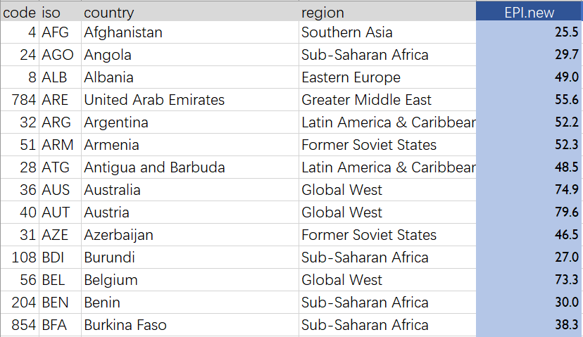 今天数据皮皮侠团队为大家分享一份2000-2022年世界环境绩效指数数据,供大家研究使用。