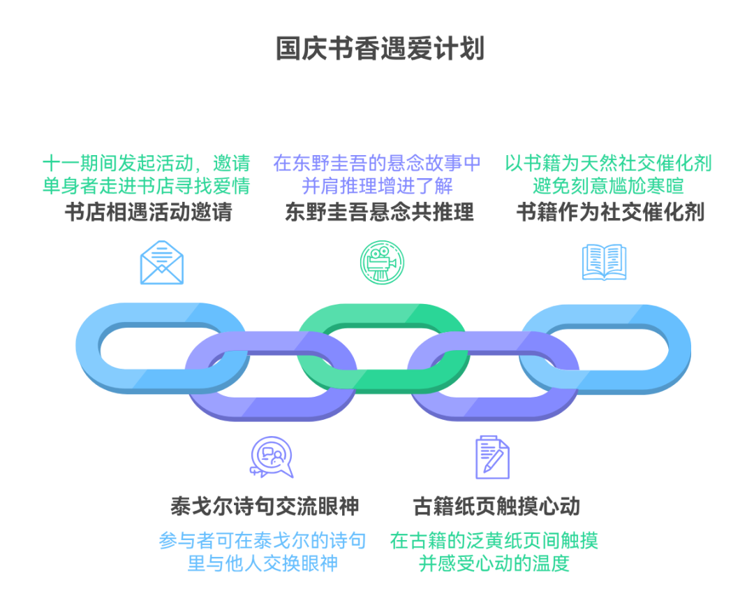 有人说,爱情就像在书店找书—— 你不知道会在哪一排书架前停下,也不知道哪本书会突然击中你。但只要你愿意走进这个充满可能性的空间,愿意放下手机屏幕的虚拟社交,愿意相信「纸质书的温度能传递心动」,就有可能在这个十一,遇见那个和你一样,愿意在文字里慢慢变老的人。