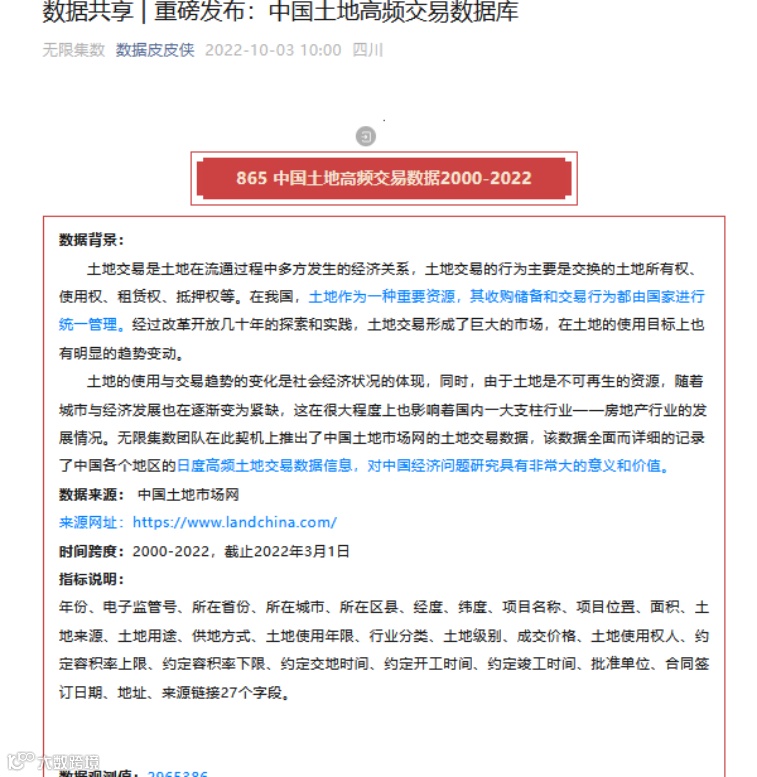 3)关于土地出让公告数据,我们的灵感来自于土地市场网,我们不仅有土地出让公告数据,还有供地结果数据(【永久会员】中国土地高频交易全量明细数据更新(2000-2023.12) ),最早于2022年10月30日发布(详见)