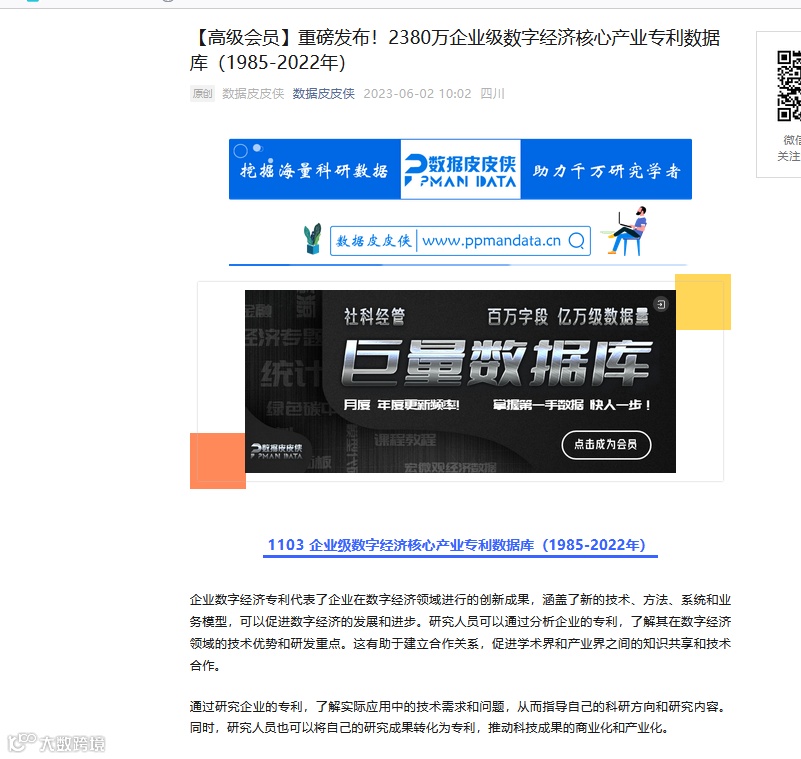 2)企业数字经济核心产业专利数据我们于2023年6月就已经发布(详见),但贵号发布的时间为2023年11月27日