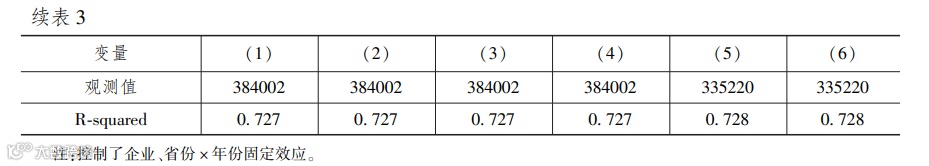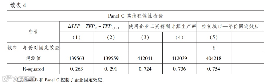 3.4稳健性讨论第一,数字化制造业投资处理。加入省份—行业数字化制造业投入计算的全要素生产率,进一步检验上游数字化对下游企业全要素生产率的影响。