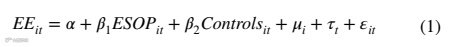 我们使用以下规范来评估员工持股计划与企业环境参与之间的关系: