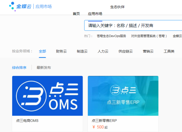 2021年5月,点三与金蝶达成战略合作关系,双方强强联合打造全渠道解决方案,目前,点三电商OMS星辰版已正式上架金蝶云平台,进入金蝶云应用市场即可订购使用。