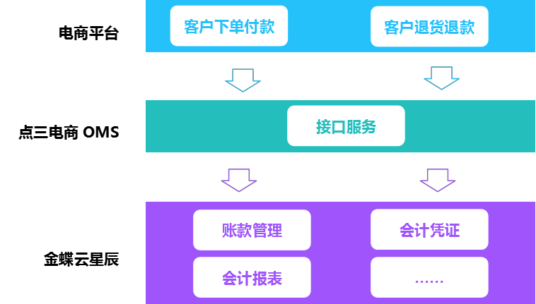 点三电商OMS和金蝶云星辰对接后,增强了星辰对电商业务的支撑能力,与金蝶云星辰实现联动协同,实现对业务财务的集中管控,提高协作效率。未来,点三将携手金蝶充分发挥协同优势、紧密合作,共同推动企业实现全流程管控,助力企业数字化转型。