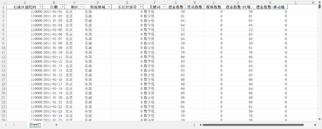 研究数字经济首先要衡量数字经济这个指标。关于数字经济(Dec)的测度,早在2014年欧盟便使用宽带接入、数字技术应用等五个一级指标和其所对应的31个二级指标对数字经济进行了测度,并公布了数字经济与社会指数用于反映数字经济的发展水平。近年来中国学者也采用了一系列方法对数字经济进行了测度。葛和平和吴福象(2021)运用熵权TOPSIS法,从发展环境、产业数字化、数字产业化与数字化治理四个维度对我国各省的数字经济进行了测度。皮皮侠团队参考黎新伍(2022)的做法,运用python整理了全国各省"数字经济"和"数字化"的百度指数、资讯指数、媒体指数,以衡量各地区的数字经济水平。今天把它分享出来,供读者进行科研使用。