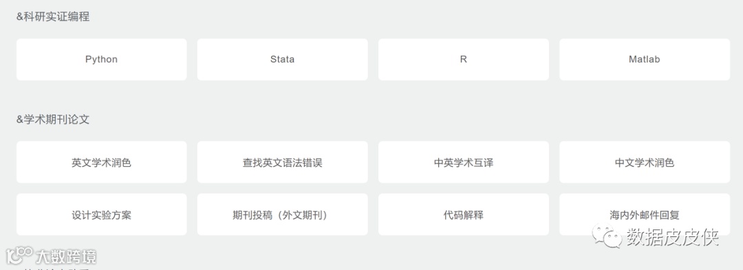 科研学术助手:这个板块主要涉及了课题申报、论文构思、论文机制设计以及实证编程,几乎可以满足社科类专业的所有学术文案、代码需求。