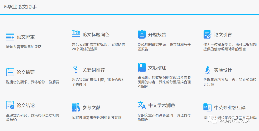 皮皮侠学术GPT目前拥有智能问答、灵感创作、预设角色三大功能,其中,灵感创作功能最为丰富!既能满足论文的一系列相关需求,也能进行实证研究与编程工作,通过智能AI带领您走向学术前沿!
