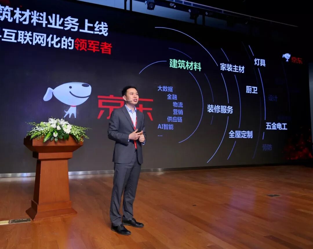 ▲ 京东商城居家生活事业部家装建材部建筑材料部总监荣宇介绍京东建筑材料业务