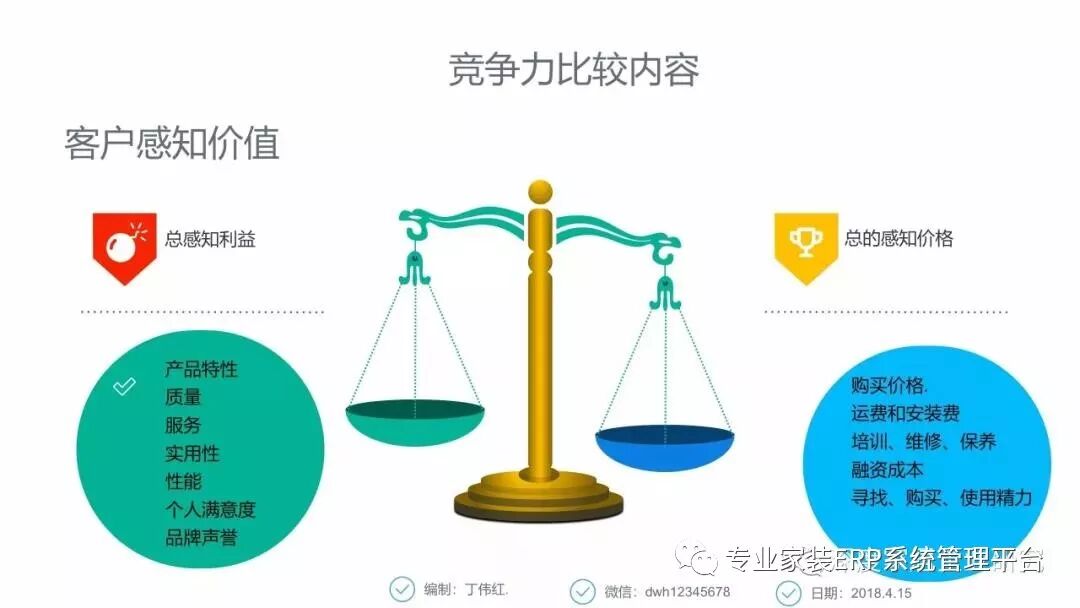 以上我给大家介绍的两种比较方式,在工作中都有其实际意义,使家装公司第一次知道如何从那些方面,去比较和判断自己公司的竞争力。其中获得成本和价格的竞争优势,通过有两个方面可以实现: 一是提高效率和服务精度, 即做与竞争对手同样的事情, 却比其做得更好。但是,这种方法并没有建立竞争壁垒,很快就会被竞争对手所模仿, 因此单纯依靠提高效率和服务精度,并不能获得持久的竞争优势;二是战略定位,即做与竞争对手不同的事情, 向顾客传递与众不同的价值,而做这件事却能够使你公司,摆脱现今刺刀见血的竞争局面,获得持续的发展动力。
