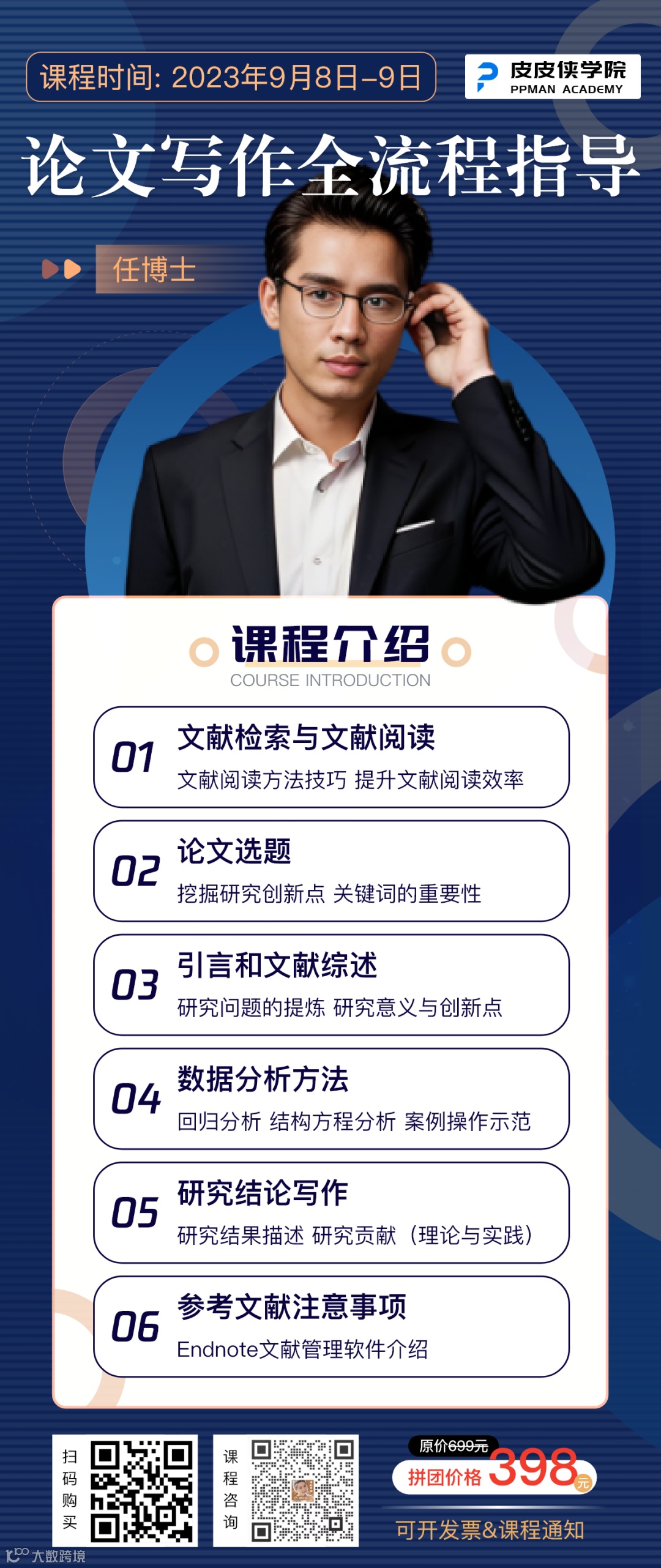 1.1课程目标:论文写作及其发表,无论是学位论文还是毕业要求的期刊论文,都是培养学生发现问题、分析问题和解决问题的创新能力的重要途径。但很多同学为此苦恼不已。为此,本次课程我们为大家邀请了某省属重点大学助理教授Dr.Ren老师,为大家开设课程进行论文写作全流程指导。