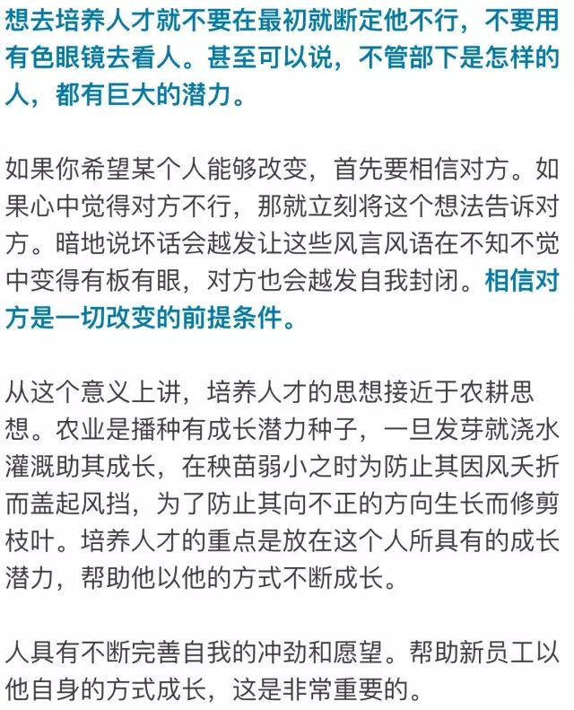 不求任何报酬和回报,只希望部下哪怕能有一点进步,这样一心实干才是培养人才。