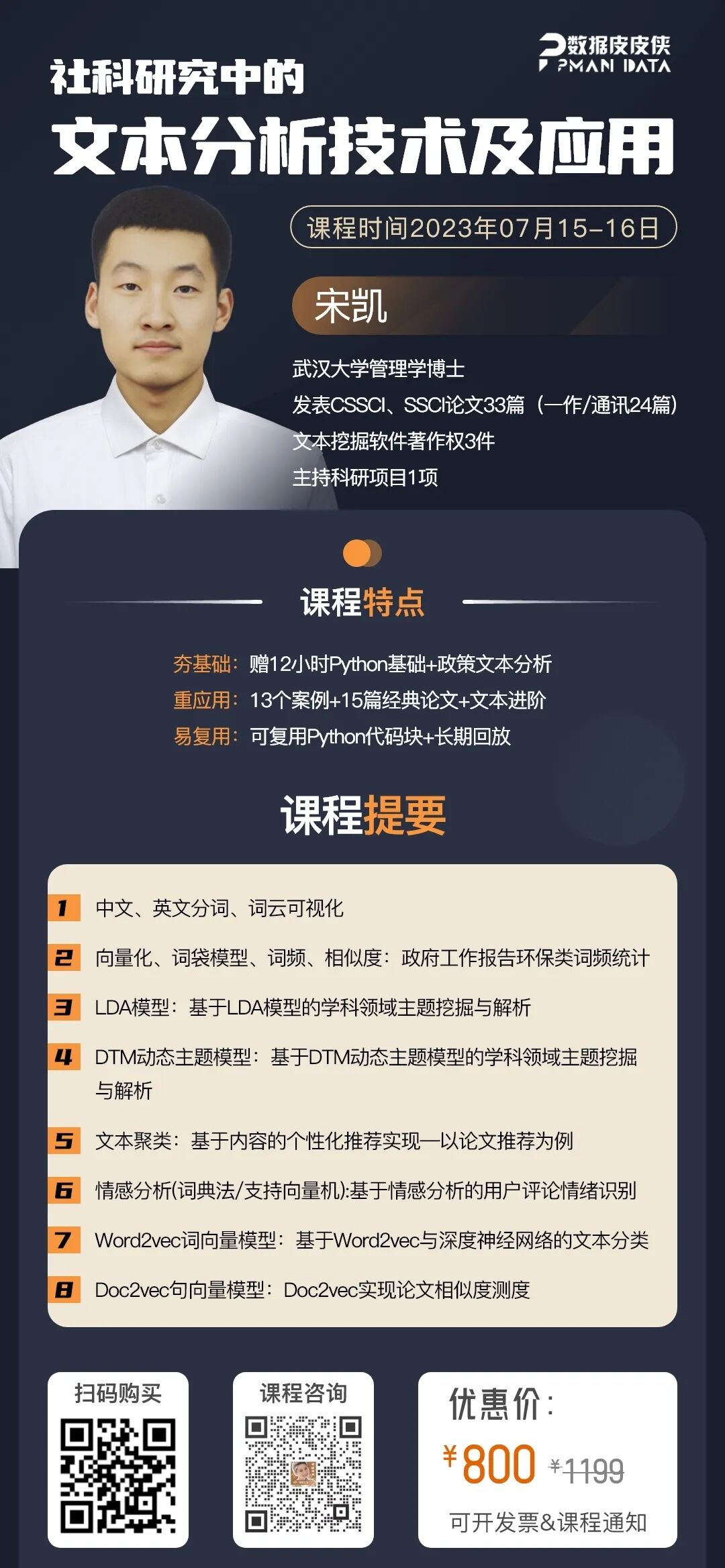 优惠二:集赞优惠,转发本推送到朋友圈2小时(不屏蔽)积赞20;或转发到100人以上年级群,并留言“很棒的文本分析课程”,享受8折优惠,可与优惠一叠加。 -