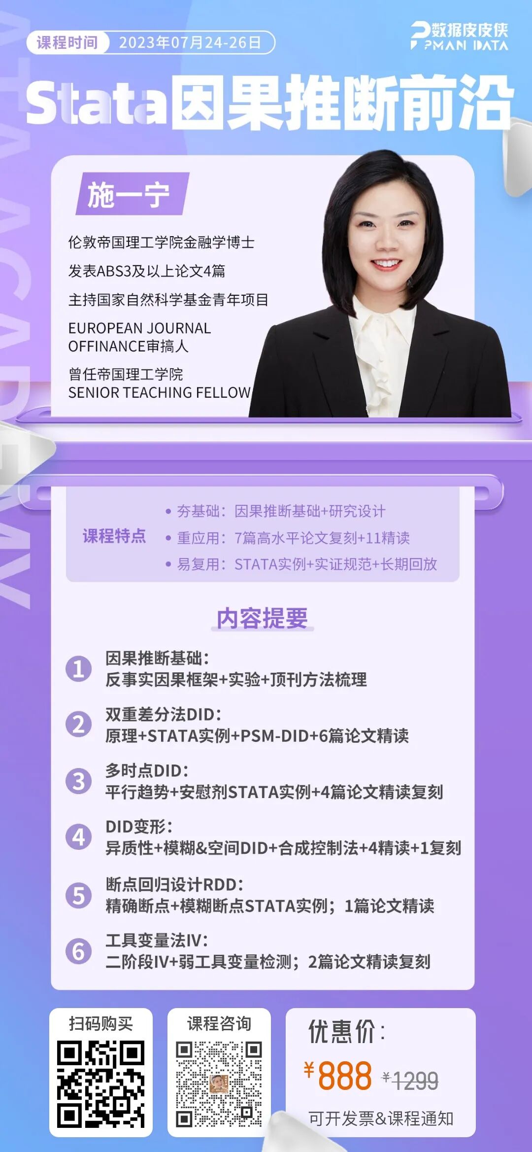 2.回归与结果解释:系数解释,置信区间,显著性等 3.稳健与聚类-稳健标准误选择问题 4.固定效应应该固定哪些效应:个体、时间、行业、省份 5.不显著的解决思路(10余种) 6.例文软件实现与解读:梁上坤, 徐灿宇, 王瑞华. 董事会断裂带与公司股价崩盘风险[J]. 中国工业经济, 2020(3):19.