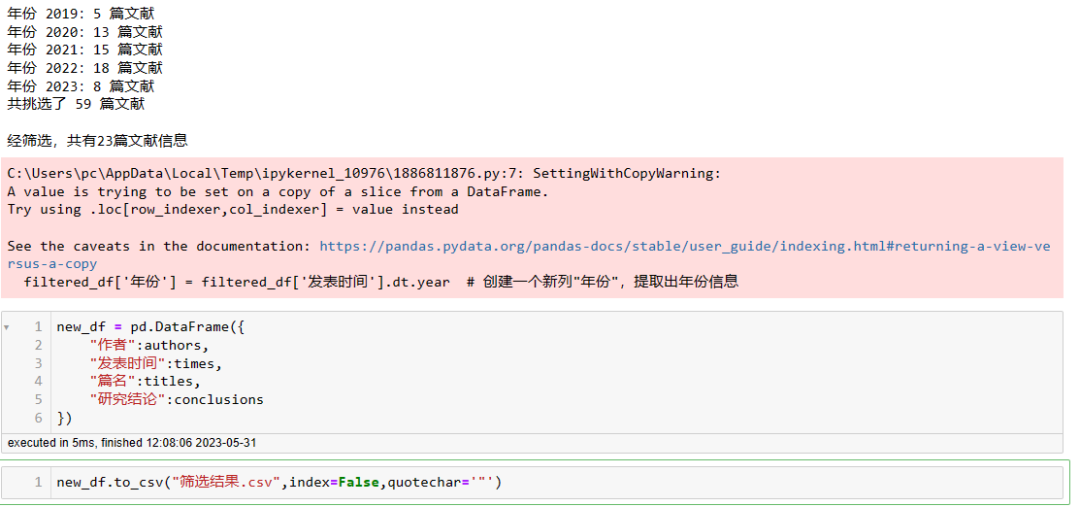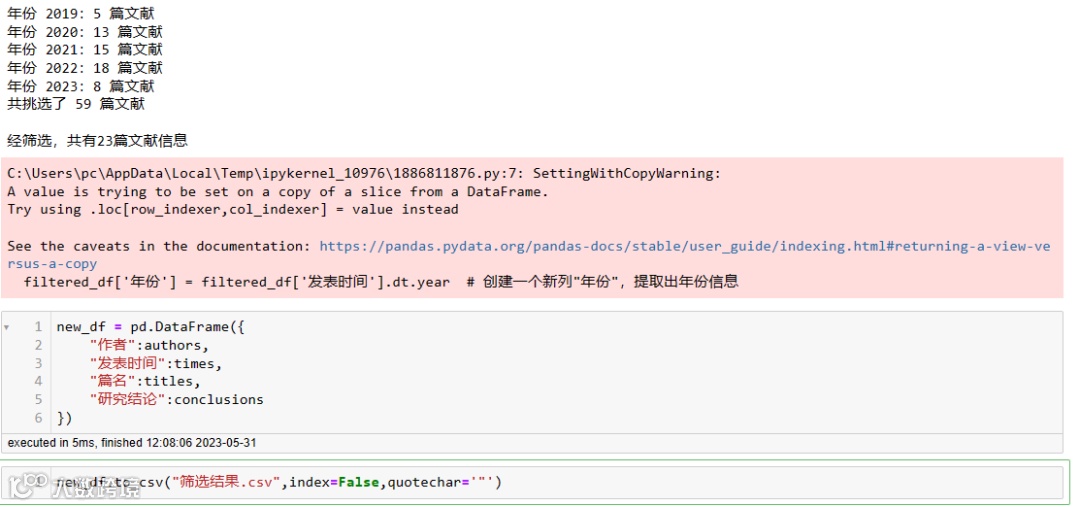 采用Python+调用GPT3.5的api接口方式从摘要中提取到研究结论。