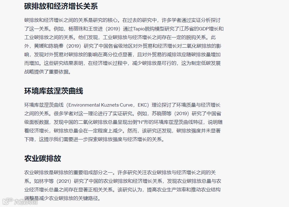 1112 ChatGPT文献综述撰写【碳排放+经济增长】