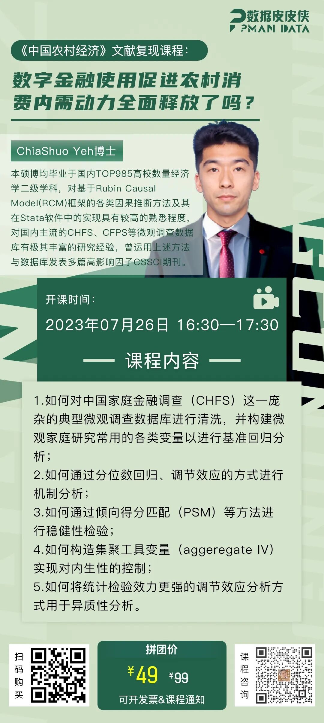 2023年07月26日16:30-17:30,直播完即上传录播“PPdata Academy”供长期回放(至少4月)