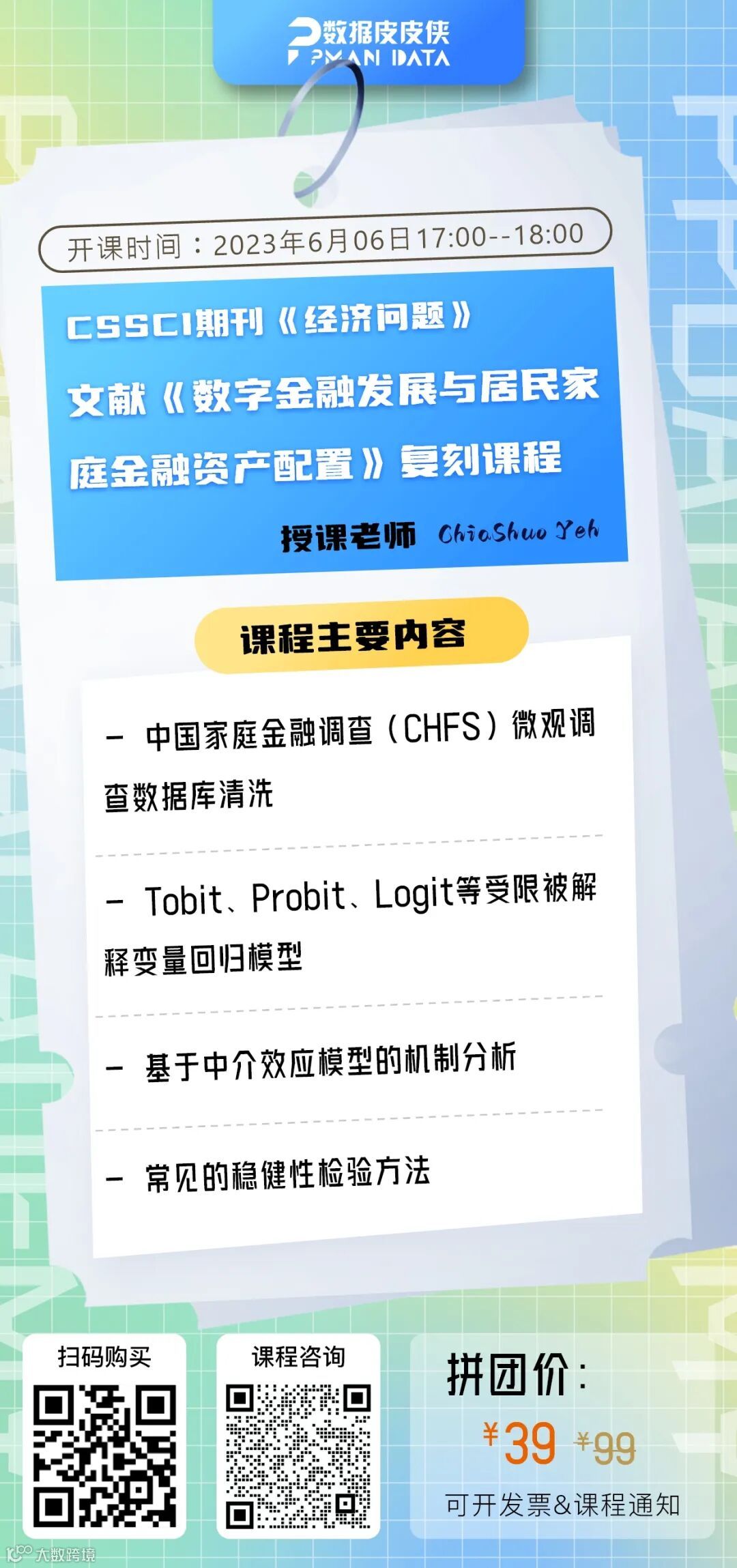 CSSCI期刊《经济问题》文献《数字金融发展与居民家庭金融资产配置》复刻课程