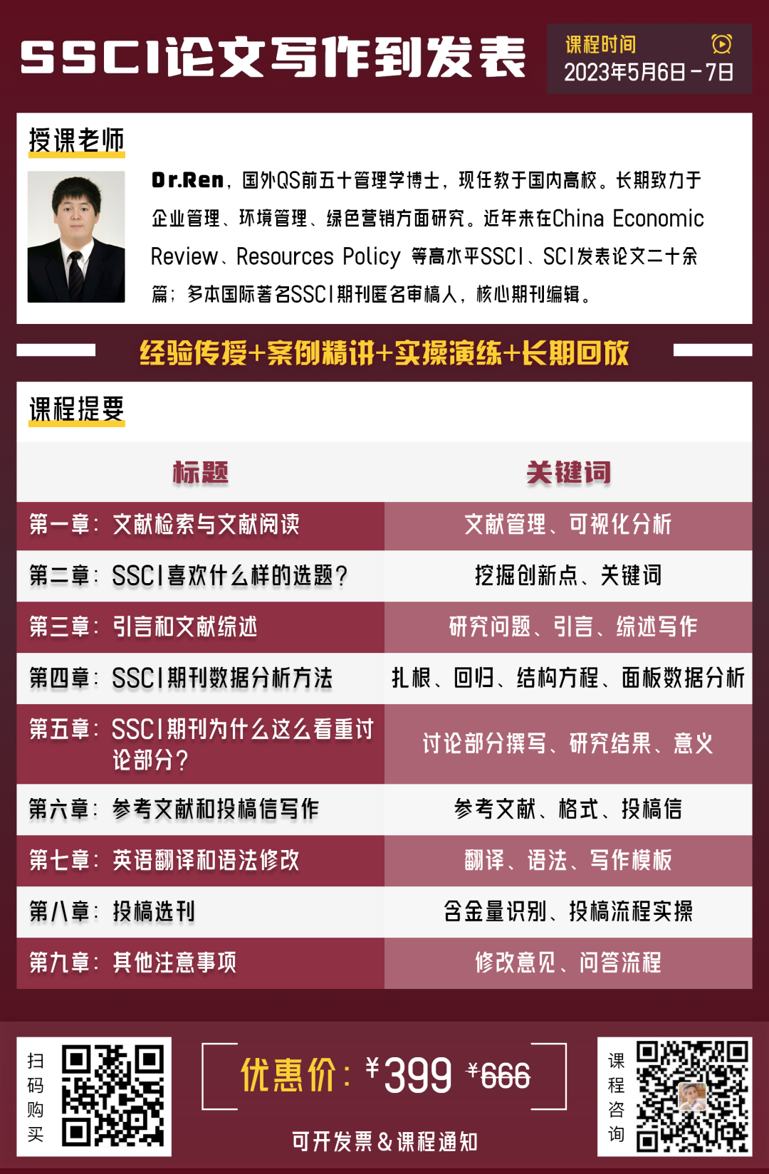 Dr.Ren,国外QS前五十管理学博士,现任教于国内高校。长期致力于企业管理、环境管理、绿色营销方面研究,并取得一定成果。近年来在China Economic Review、Resources Policy 等高水平SSCI、SCI发表论文二十余篇;多本国际著名SSCI期刊匿名审稿人,核心期刊编辑;主持或参与多项国家级、省部级课题