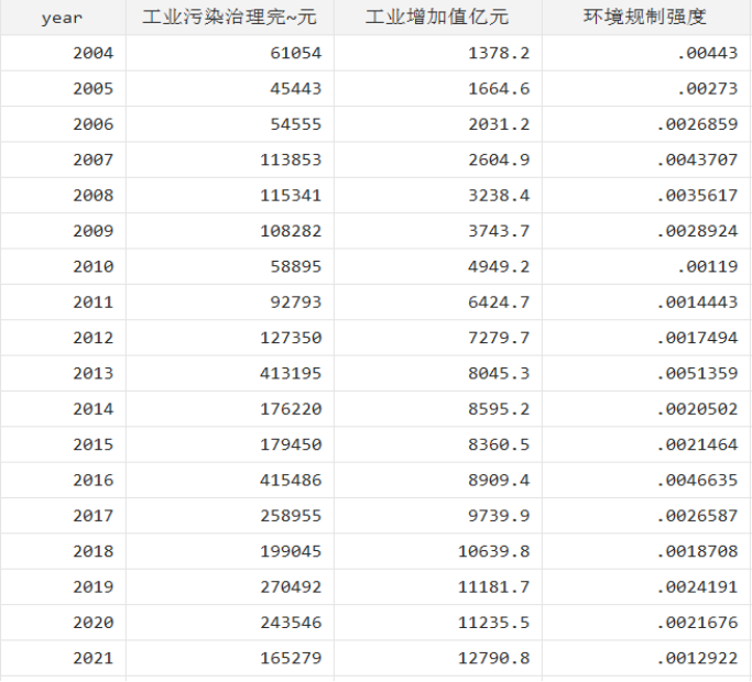 1003 环境规制面板数据:2004-2021年全国各省环境规制强度数据(含地级市环境规制相应指标)