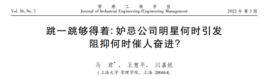 《管理工程学报》:对大佬的妒忌使人奋发?还是使人emo?