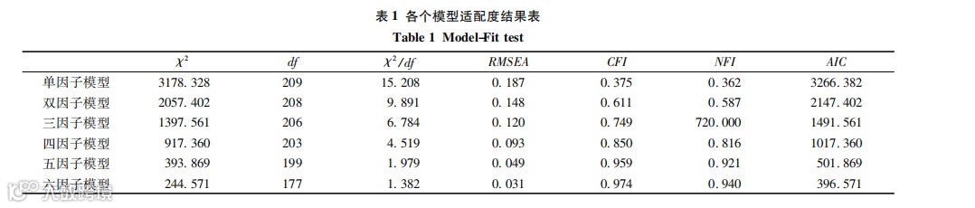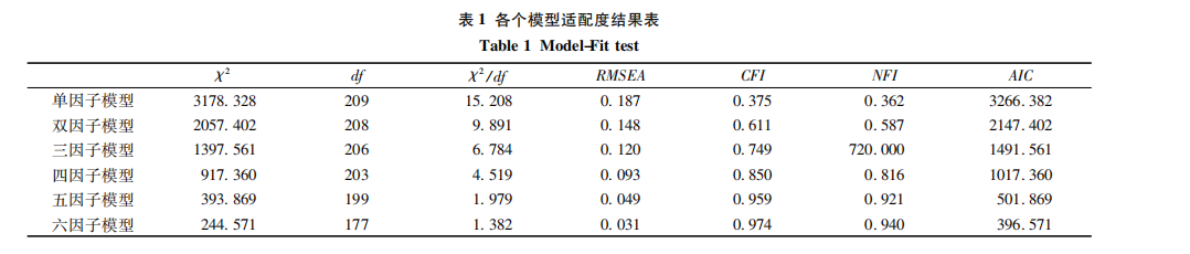 表1所示,相对于其他因子模型,五因子模型(χ2/df=1.979,RMSEA=0.049,CFI=0.959)的适配指标最为理想,表明数据结构具有良好的区分性。