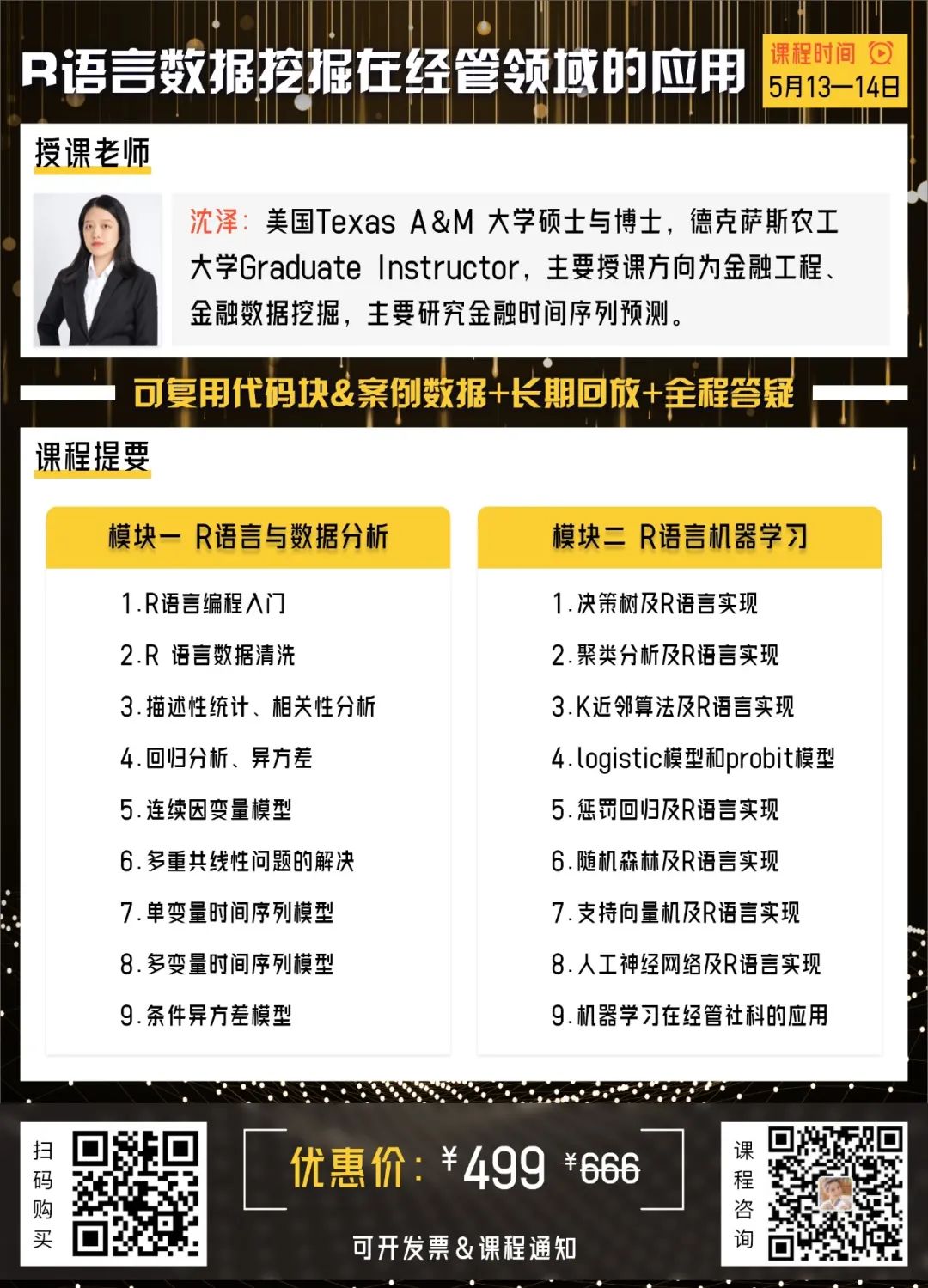 导读:R语言数据分析的经管研究应用课程简介随着数字经济的深入发展,大量非结构化、高维等为特征的大数据成为各学科学术