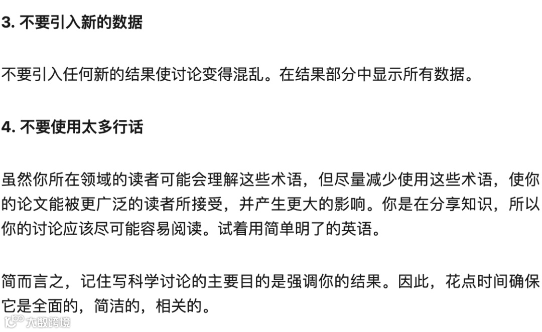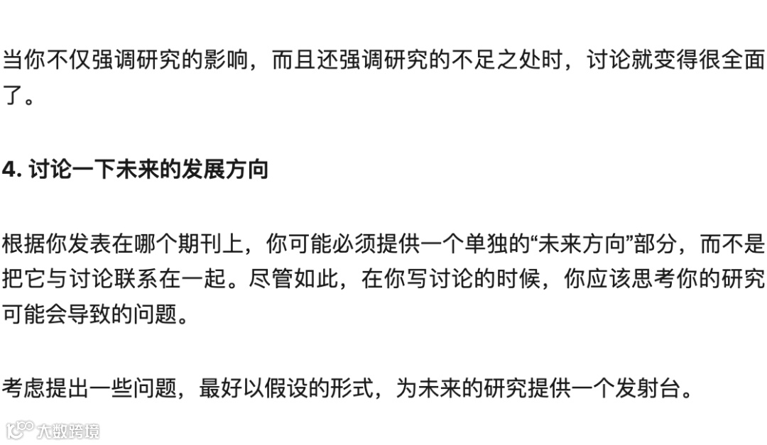 然而最困难和最发人深省的部分是”Discussion“(讨论)部分。这也基本是论文的最后一部分,是编辑和审稿人最关注的部分。