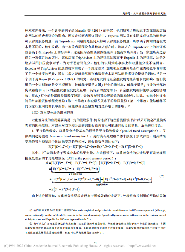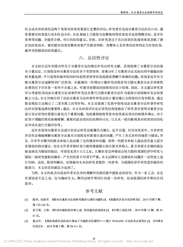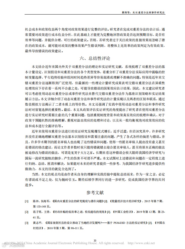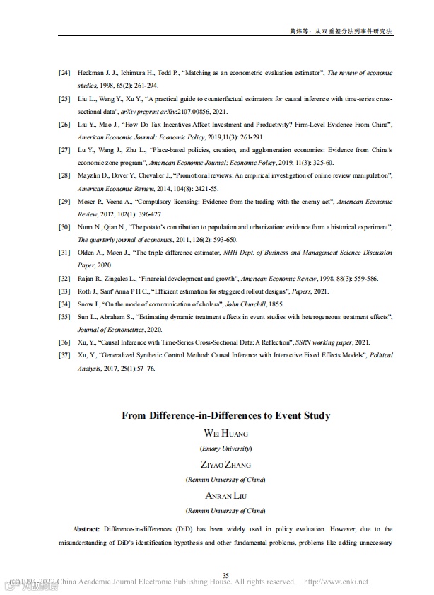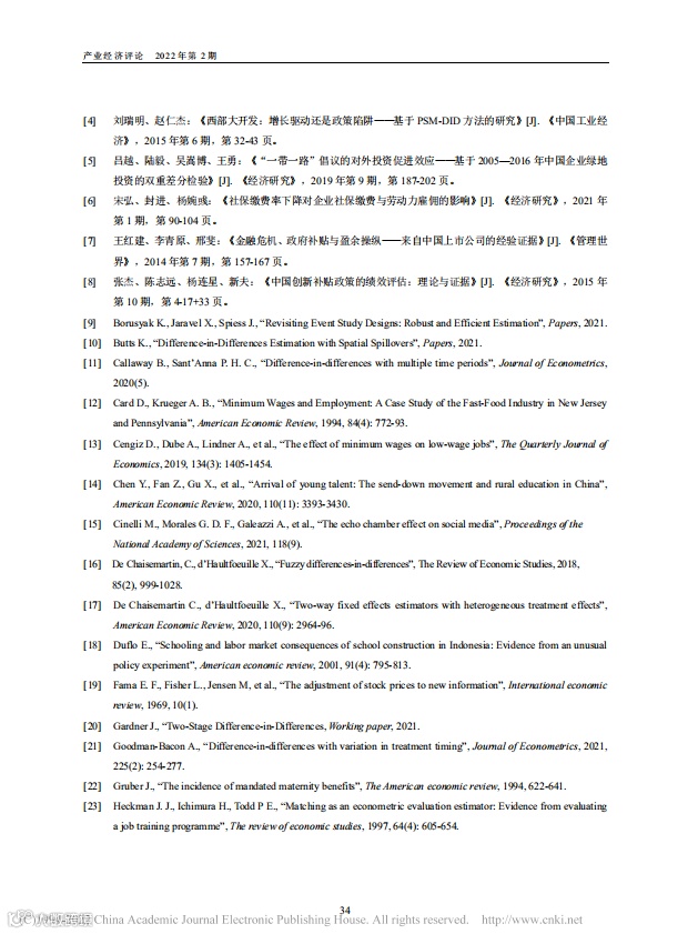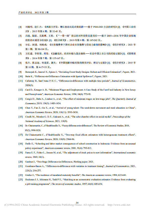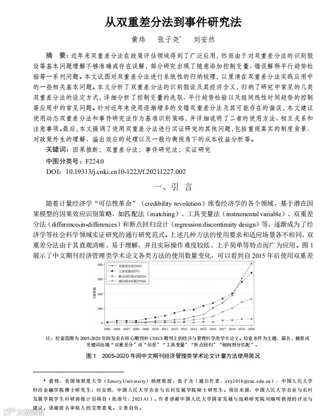 黄炜,张子尧,刘安然.从双重差分法到事件研究法.产业经济评论:1-18[2021-12-29]