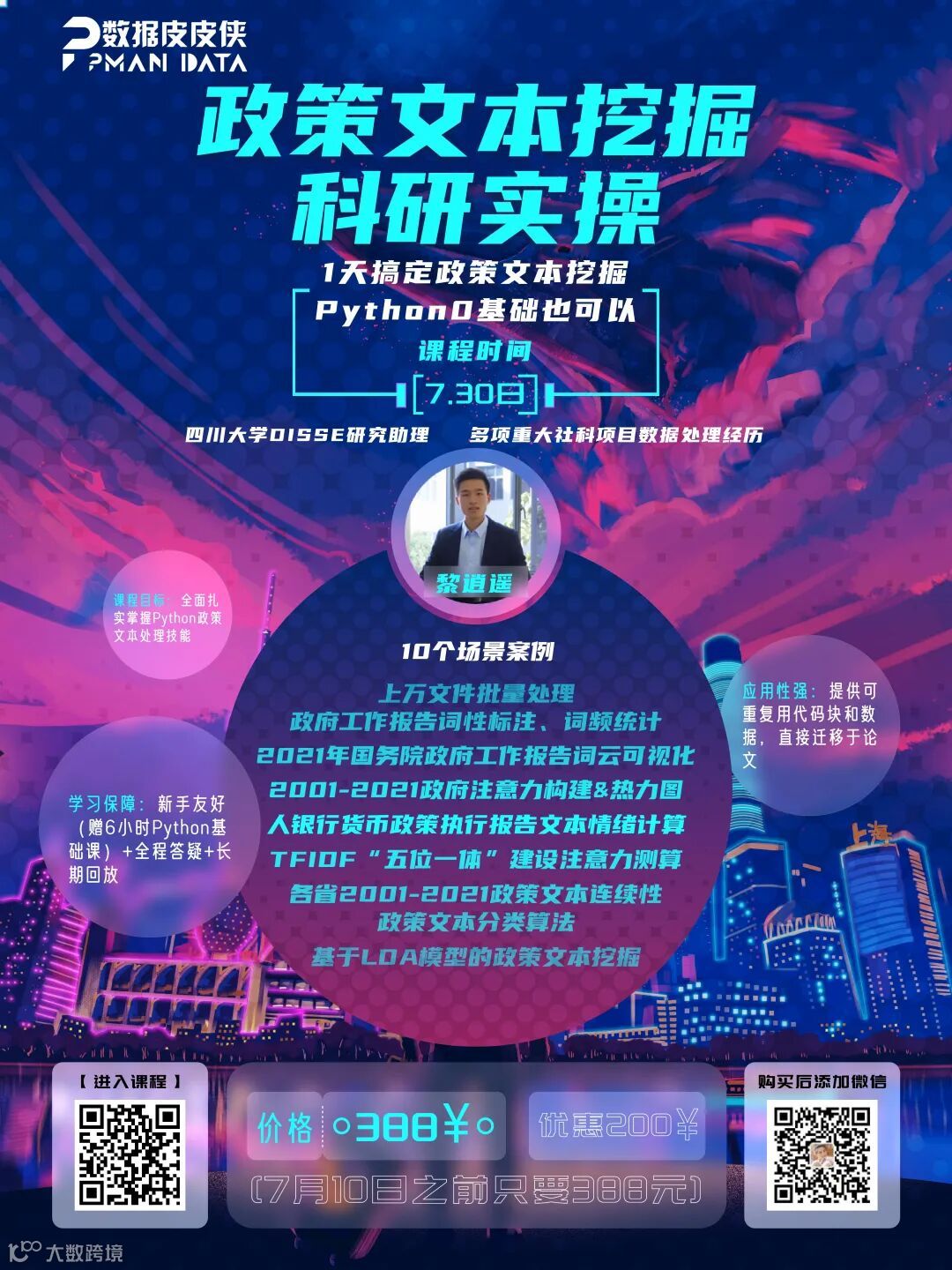 可复制:提供可重复使用的代码块和案例数据(包括政府工作报告数据和货币政策执行报告等),可满足学员大部分科研需求