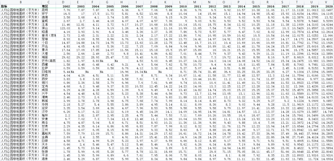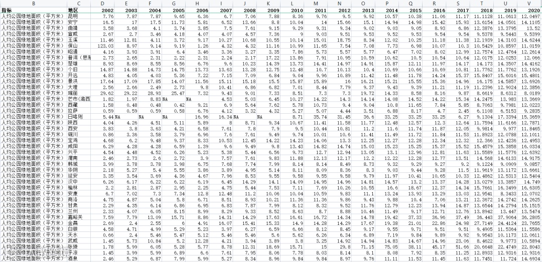 人口密度、绿地面积、绿化率等面板数据