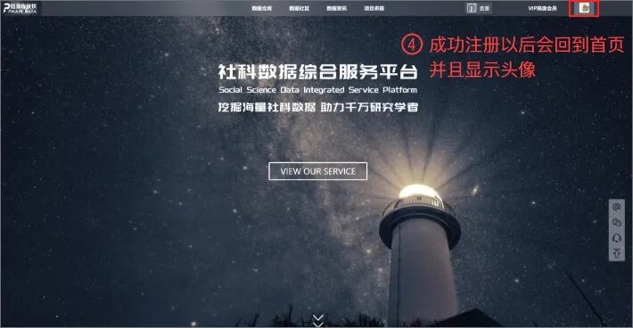 第四步:根据提示注册成功以后就可以登录了,登录成功会直接跳转到首页,右上角显示头像就代表登录成功了。