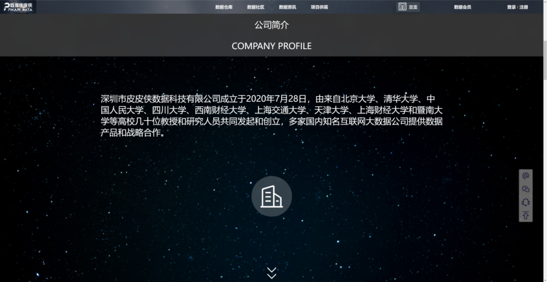 这里有我们皮皮侠的公司简介、公司文化、服务产品、用户群体、数据导航等几个板块,感兴趣的伙伴可以了解了解。