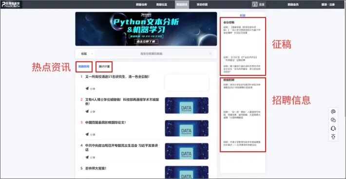 数据社区:用户可以在这里评论交流,大家一起相互分享数据资料或者学习资料。