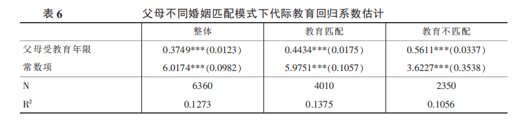 (3)父母教育不同匹配模式下的代际教育回归系数(代码略)(数据集3)