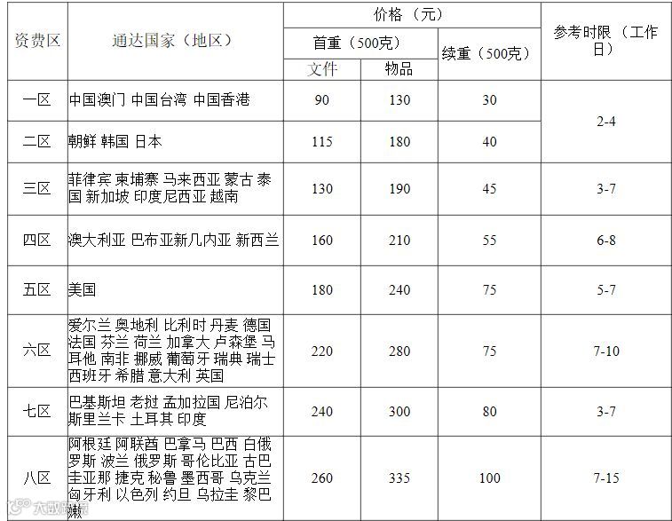 DHL根据始发地、目的地和包裹重量来推算收费以及运送时间,分为两种速度的Express和另外一种Express Worldwide,收费与速度各有不同。