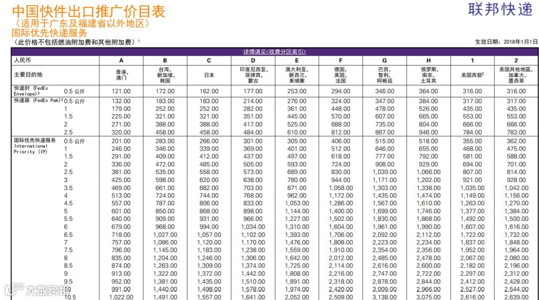 FedEx,中文名叫联邦快递,成立于1971年,拥有700多架飞机和4万多部车,总部在美国。公司实力和运送质量绝对是一顶一的,就是邮寄费用有点小贵。