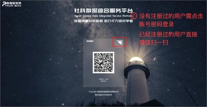 第二步:进入以后是扫一扫登陆界面,但是没有注册过的用户不能直接用微信扫,需要根据点击红色框内的图标进入账号密码登录界面。