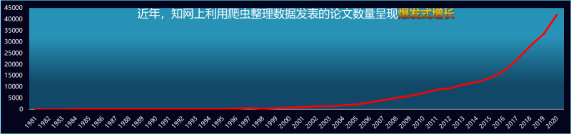 (2)从纷杂的大数据获取有价值信息。近年来,知网上利用爬虫整理数据发表论文数量呈现出爆发式增长: