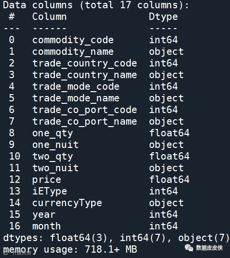 全样本数据是什么概念?2020年4月份的一张Excel表就有718MB,本来我是要Excel打开呢,结果Excel没有点了半天,没有反应过来。还是Python比较好,直接导入,具体数据特征见下图,商品的种类有533万多条,商品的属性有17个。如果使用这种海关数据做研究,那将是一种什么的酸爽感呢?