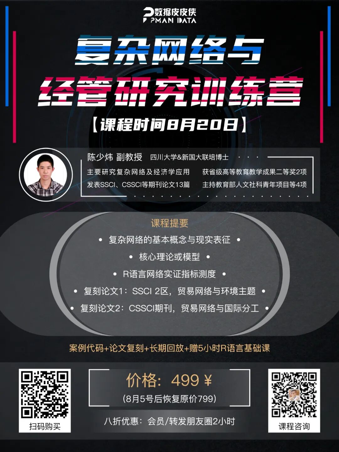 复杂网络与经管研究训练营来啦! 数据皮皮侠