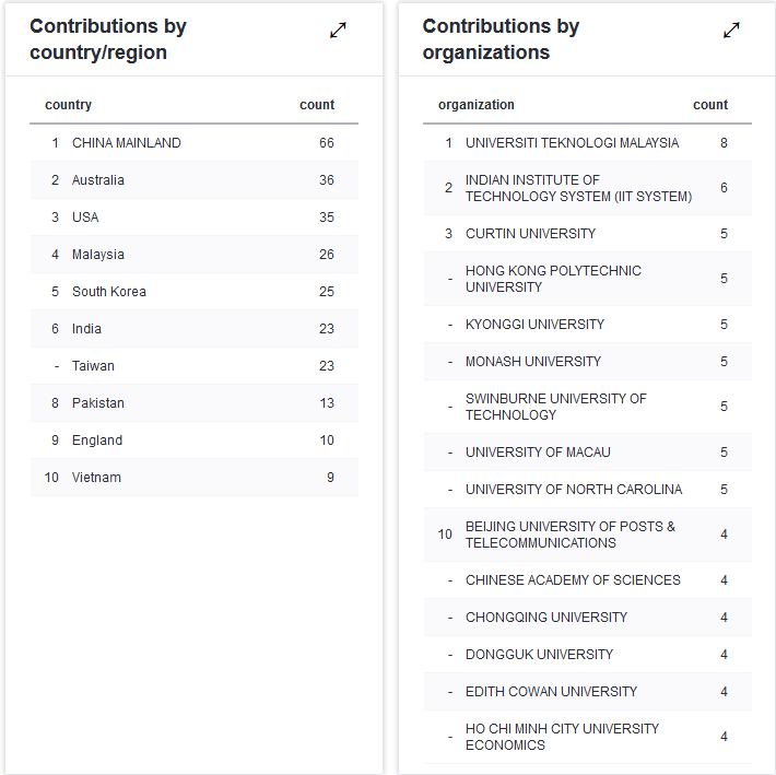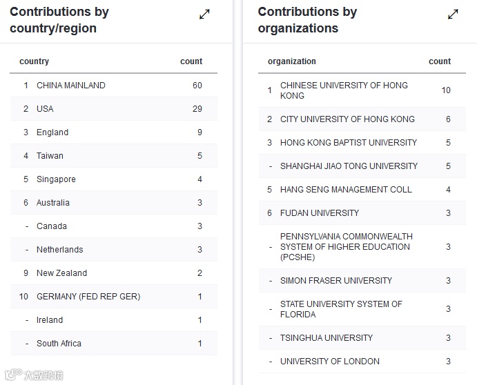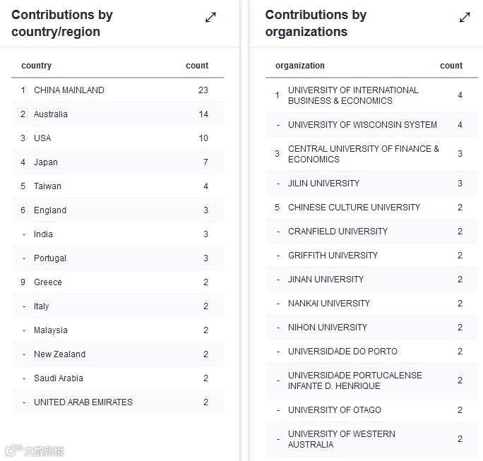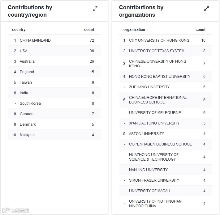 中国大陆地区力压澳大利亚,是Asia Pacific Journal of Marketing and Logistics刊文的首要来源地,香港理工大学、澳门大学、北京邮电大学、中国科学院、重庆大学等机构在该刊上的发表记录排在前列。