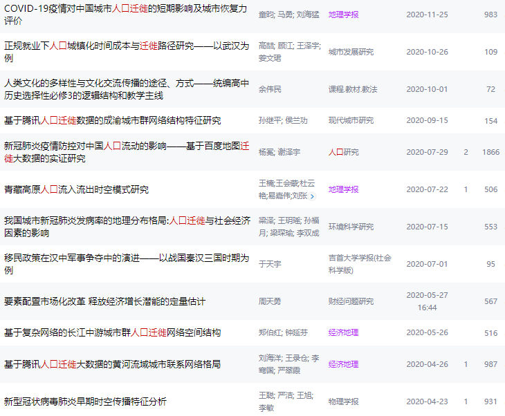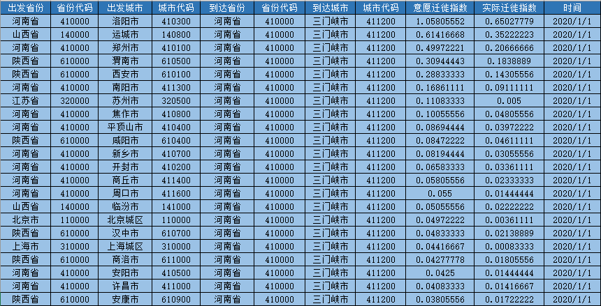 人口迁徙大数据2019-2020