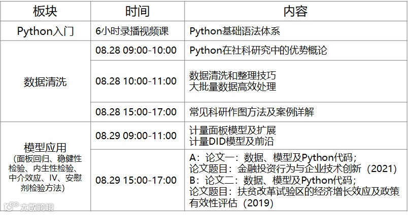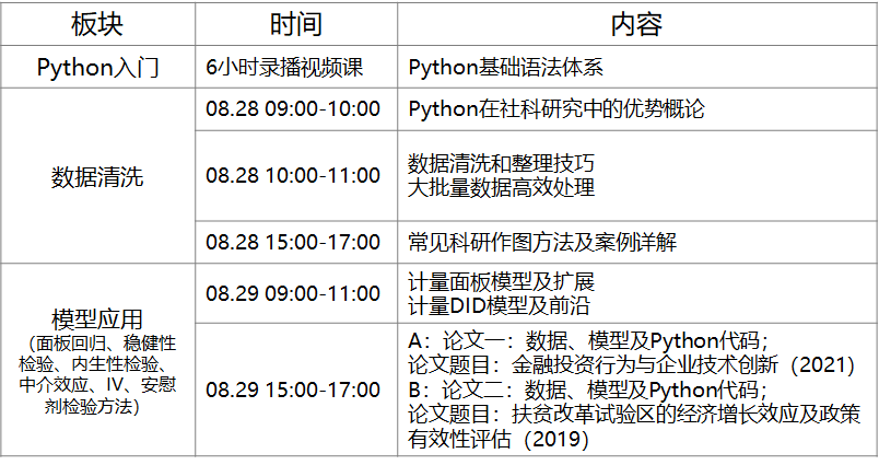 假期快要结束了,很多搞科研的粉丝朋友希望学习一些实用的Stata计量技巧,因为其程序超级简单,但其实Python才是性价比最高的社会科学研究利器,作为一款开源免费的软件,其在数据清洗、大规模数据处理、数据可视化、以及模型的科学计算上存在stata无法比拟的优势,而且在业界应用面更广。为此,我们设计了一套优质的“Python计量特训营”手把手教你用Python完成实证分析。我们提前附赠一套黄药师博士的“Python入门课程”,因此本课程适合Python、计量小白以及进阶水平的朋友。