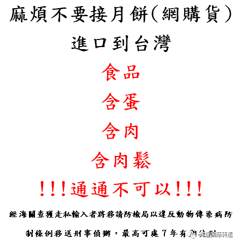 由於台灣管控,我司從今日起,食品渠道暫停,請各位不要購買食品衝貨等行為,如有被海關查獲,我司不承擔任何責任,請知悉!!!!