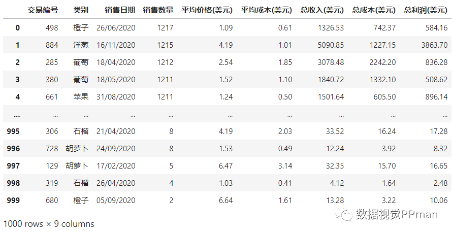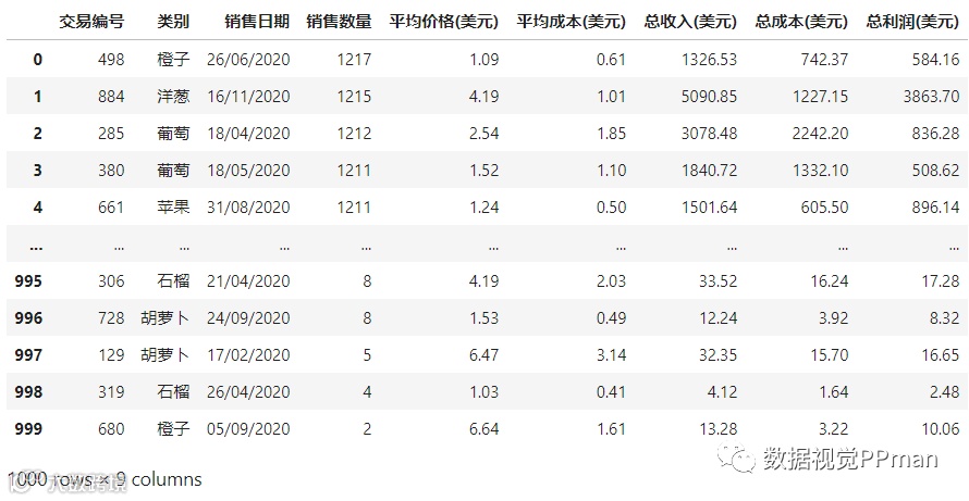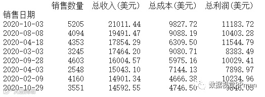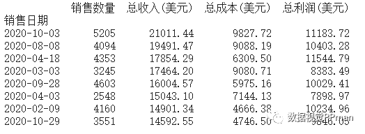)[["销售数量", '总收入(美元)', '总成本(美元)', "总利润(美元)"]]